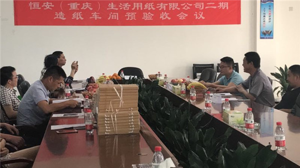 2017年5月16日上午,由我司承建的恒安(重庆)生活用纸有限公司二期造纸车间工程在会议室召开预验收会议。会议由恒安(重庆)生活用纸有限公司组织,建设单位相关部门、设计院、监理单位、质量检验单位、施工单位联合组成小组进行验收并参加会议。