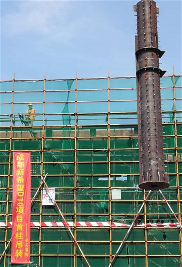 成都新希望D10项目钢结构首柱吊装